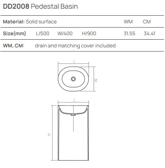 Dea Design Раковина напольная 50x40x90h см, Solid Surface, выпуск в пол, цвет: grey DD2008 500 3