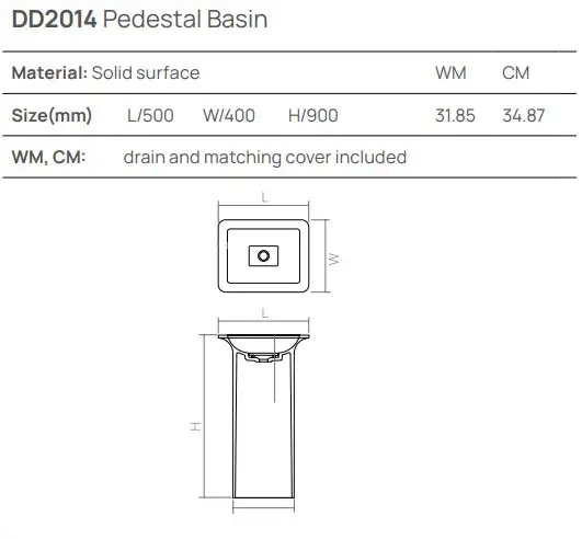 Dea Design Раковина напольная 50x40x90h см, Solid Surface, выпуск в пол, цвет: white DD2014 500 18