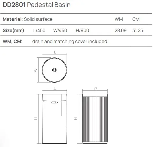 Dea Design Раковина напольная d45x90h см, Solid Surface, выпуск в пол, цвет: wave DD2801 450 15