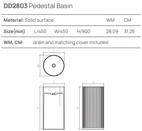 Dea Design Раковина напольная d45x90h см, Solid Surface, выпуск в пол, цвет: grey brown DD2803 450 6