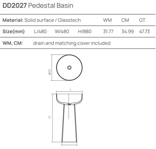 Dea Design Раковина напольная d48x88h см, Solid Surface, выпуск в пол, цвет: mint DD2027 480 12