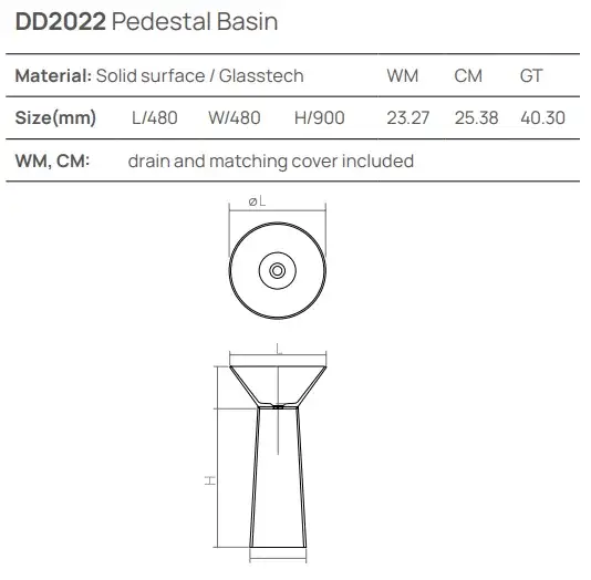 Dea Design Раковина напольная d48x90h см, Glasstech, выпуск в пол, цвет: lake water blue DD2022 480 R8