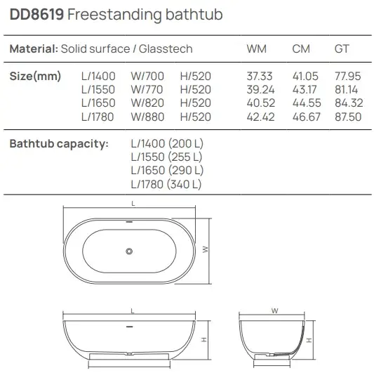 Dea Design Shadow Ванна 155х77х52см., отдельностоящая, Solid Surface, цвет: White №18