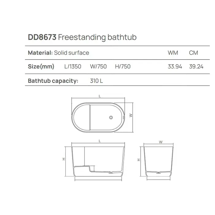 Dea Design Single Ванна из Solid Surface отдельностоящая 135x75 см, композит, цвет: белый матовый DD8673 1350 18