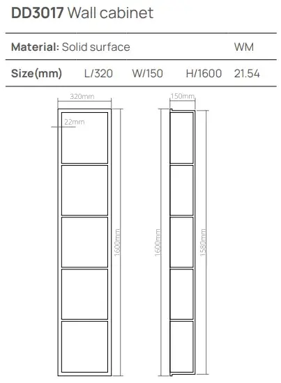 Dea Design Шкаф 32x15x160h см, Solid Surface, подвесной, цвет: white DD3017 320 18