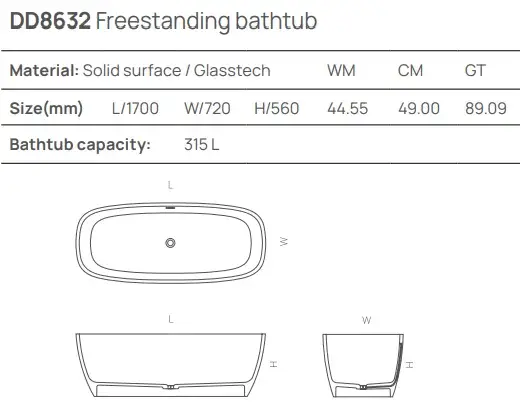 Dea Design Soul Ванна 170х73х60см., отдельностоящая, Solid Surface, цвет: White №18