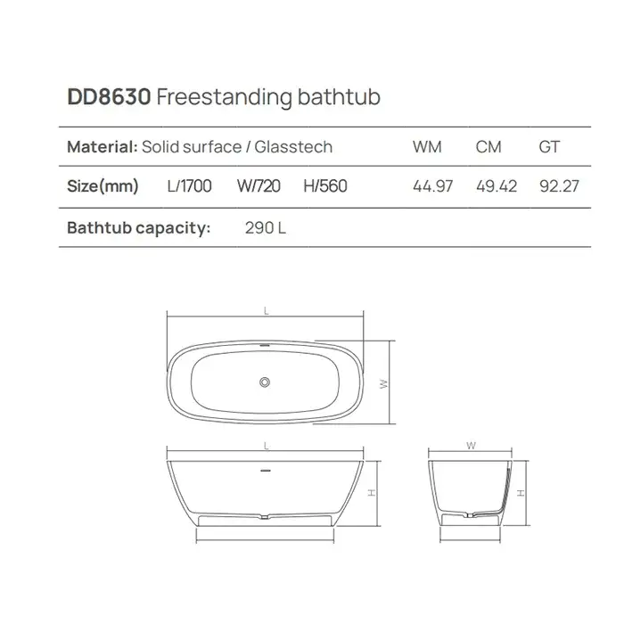 Dea Design Soul Ванна из Solid Surface отдельностоящая 170x72 см, композит, цвет: белый матовый DD8630 1700 18