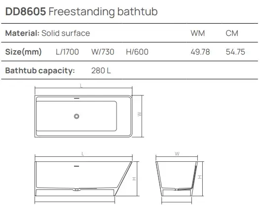 Dea Design Soul Ванна 170х73х60см., отдельностоящая, Solid Surface, цвет: White №18