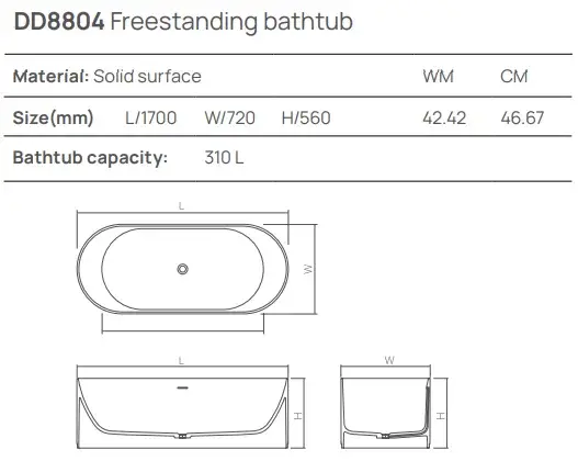 Dea Design Stripes Ванна 171х72х56см., отдельностоящая, Solid Surface, цвет: White №18