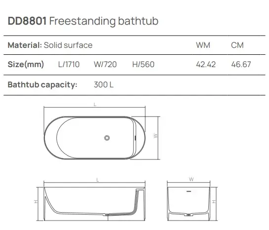 Dea Design Stripes Ванна 171х72х56см., отдельностоящая, Solid Surface, цвет: White №18