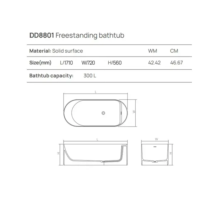 Dea Design Stripes Ванна 171х72х56см., отдельностоящая, Solid Surface, цвет: White №18
