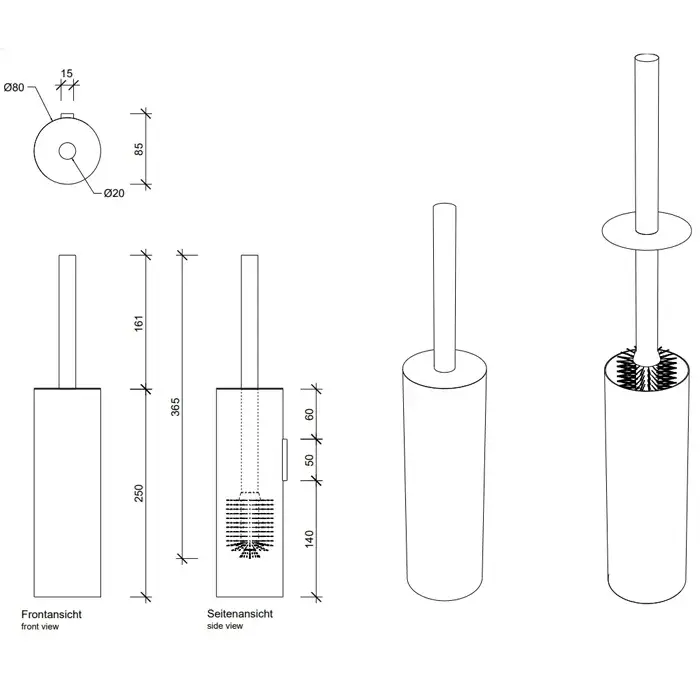 Decor Walther Bar SBK Стойка с ершиком и держателем т/б, цвет: сталь матовая