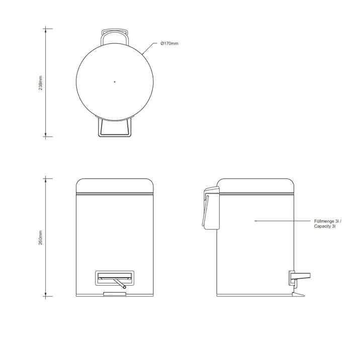 Decor Walther Basic Мусорное ведро с крышкой и педалью, 3 л, нержавеющая сталь, цвет: чёрный матовый 0615760