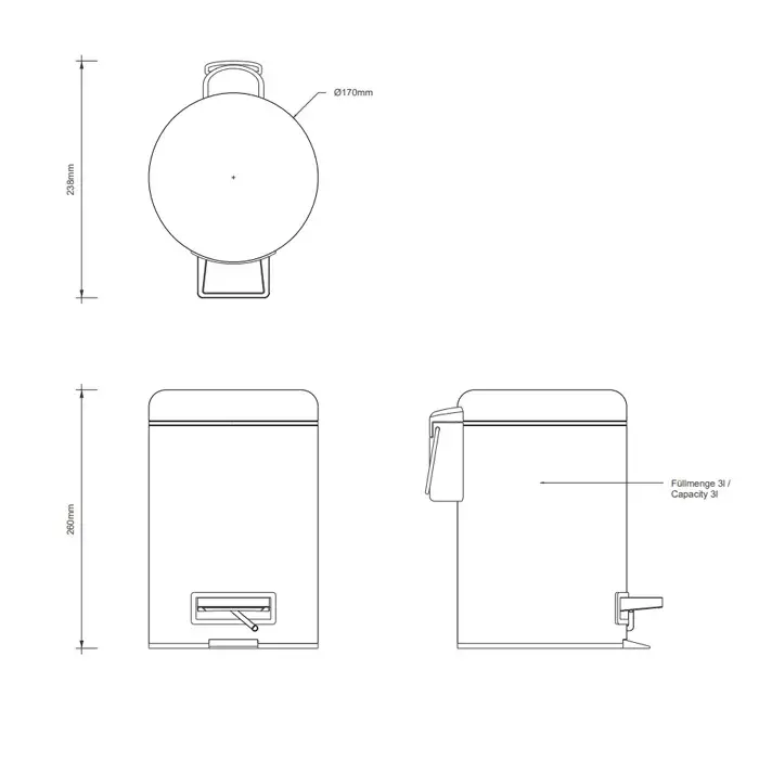 Decor Walther Basic Мусорное ведро с крышкой и педалью, 3 л, нержавеющая сталь, цвет: хром 0615770
