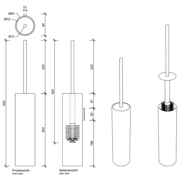 Decor Walther Black Stone Ершик для унитаза подвесной с композитной колбой, цвет: хром 0970964