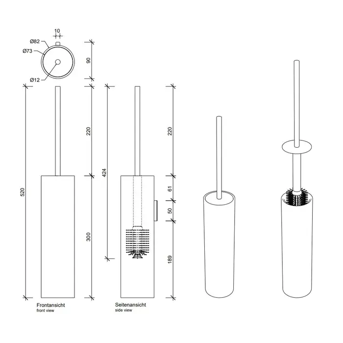 Decor Walther Black Stone Ершик для унитаза подвесной с композитной колбой, цвет: сталь 0970965