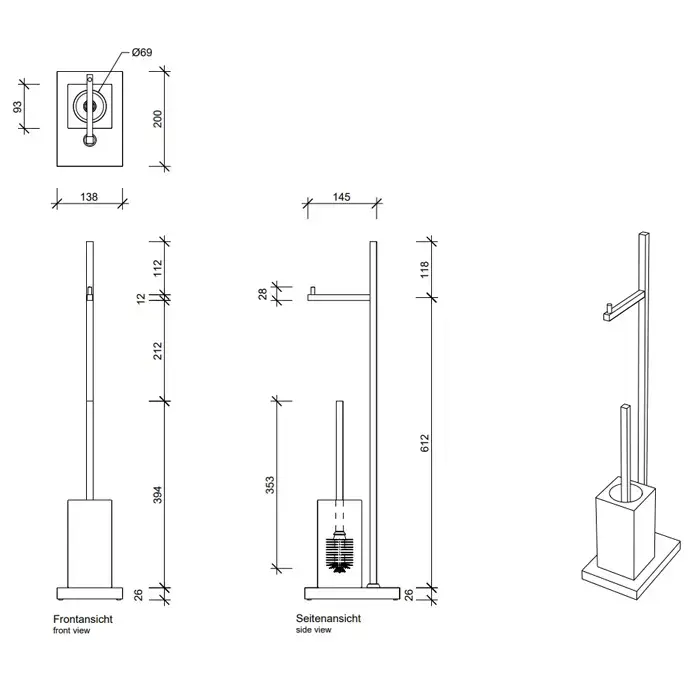 Decor Walther DW 6700 Напольная стойка 74.1см., с ершиком и бумагодержателем, фарфор, цвет: хром / белый