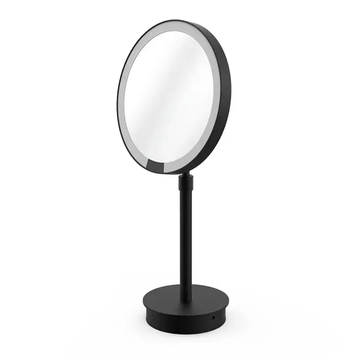 Decor Walther Round Just Look WR Косметическое зеркало 21.5см, подвесное, увел. 5x, подсветка LED, цвет: черный матовый