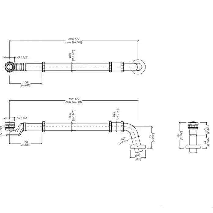 Devon Admiral Сифон для ванны, с удлинителем и патрубком выпуска в пол, цвет хром AS06251DE3CR