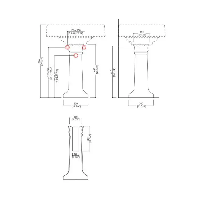 Devon&Devon Blues Раковина 30х30 см, 3 отв., двойная, на пьедестале, цвет: белый