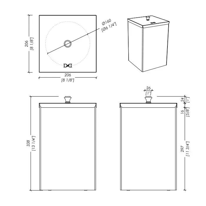 Devon&Devon Cube Ведро мусорное, напольное, с крышкой, цвет: хром