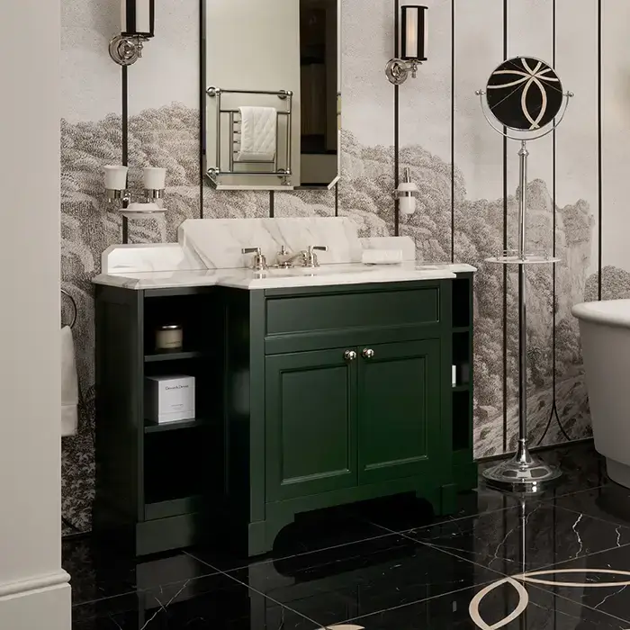 Devon Flair Тумба под раковину 128х102 см, со столешницей из мрамора CALACATTA BORGHINI, раковина WHITE50 , цвет мебели ENGLISH GREEN