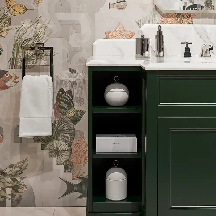 Devon&Devon Flair Тумба под раковину 128х102см., со столешницей из мрамора Calacatta Borghini и раковиной White50, цвет: English Green