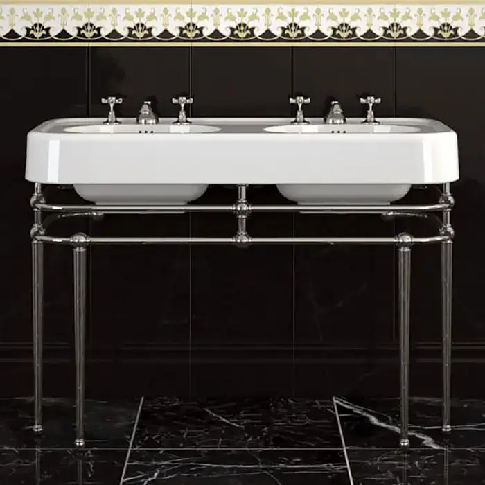 Devon&Devon Blues Консоль 71х56.5см, с двойной раковиной на 3 отв, напольная, цвет: хром/белая