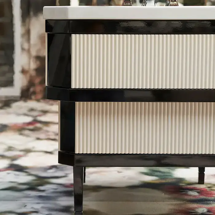 Devon&Devon Metropolitan Тумба под раковину DEEP BLACK 88,5см, планками PURE WHITE, столешница GRANITO NERO ASSOLUTO, раковина SWINDON черная