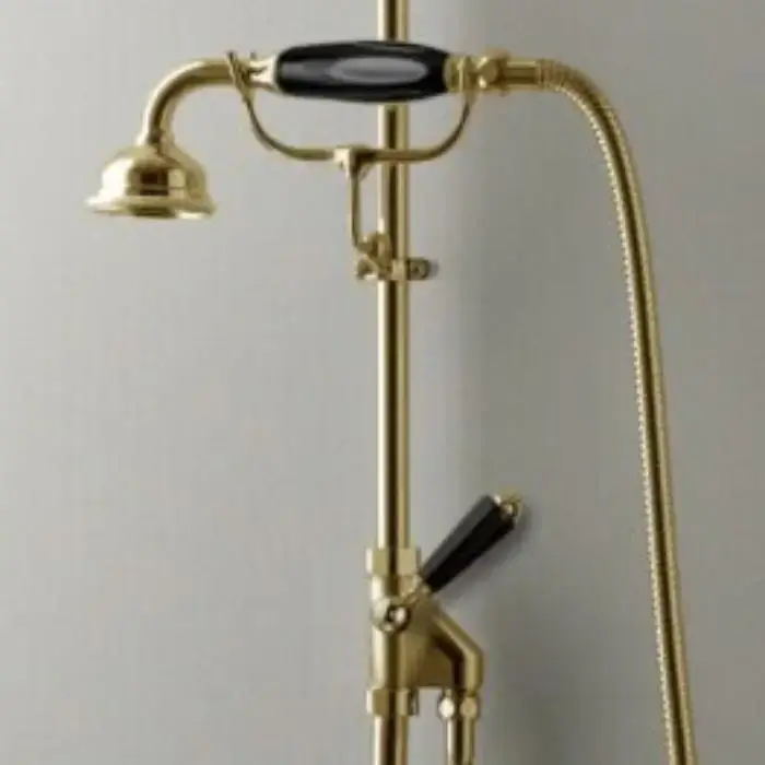 Devon&Devon Ручной душ с переключателем и держателем с черной ручкой, цвет: светлое золото