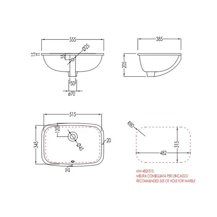 Devon Swindon Раковина встраиваемая под столешницу (55,5х38,5 cм), цвет: черный (все раковины С ДЕФЕКТАМИ на ЭМАЛИ)
