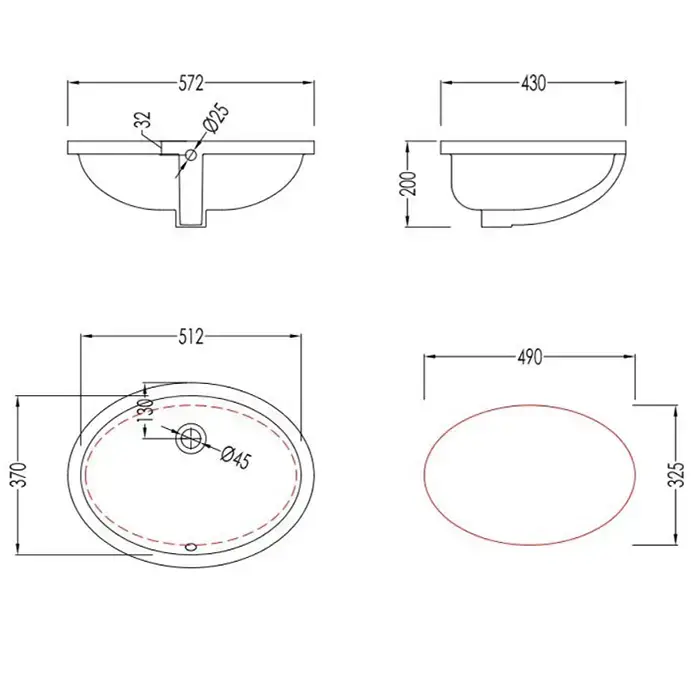 Devon&Devon WHITE 56 Раковина 57.2х43 cм, без отв., встраиваемая под столешницу, цвет: белый