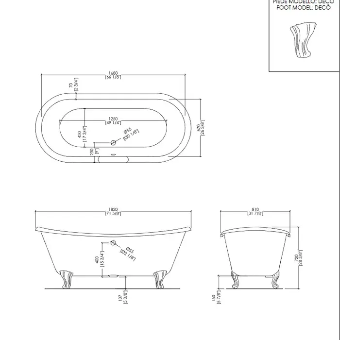 Devon&Devon Admiral Ванна чугунная, 182х81хh72 см, ножки DECO алюм. полир. 2MRADMIRALFPDCRDD