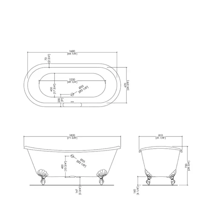 Devon&Devon Admiral Ванна чугунная, 182х81хh73 см, снаружи под окраску 2MRADMIRALCRDD