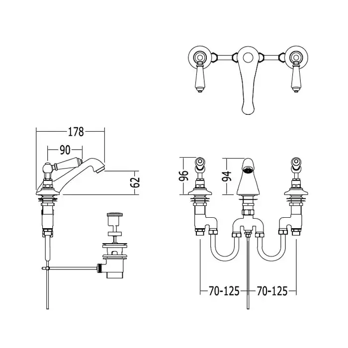Devon&Devon Black Dandy Смеситель для раковины на 3 отв., цвет никель блестящий MARF46NKSBD