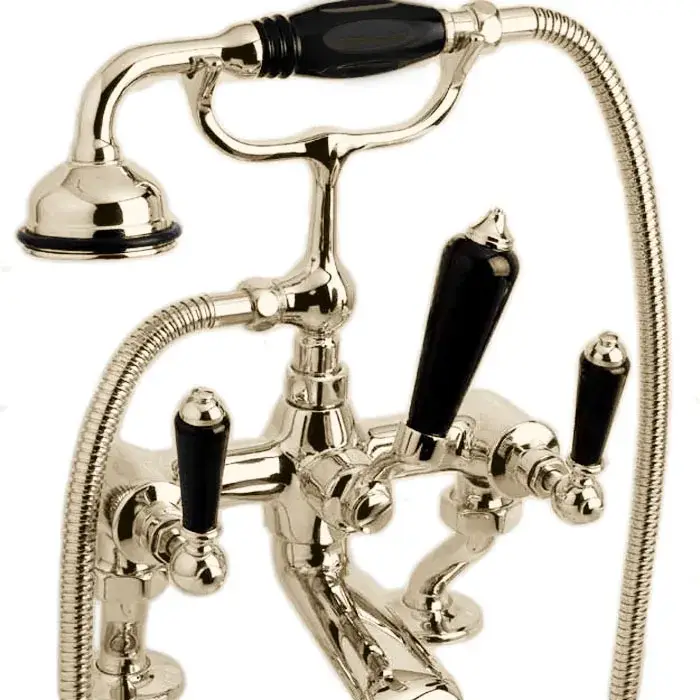 Devon&Devon Black Dandy Смеситель для ванны на борт, ручки черные, цвет: светлое золото MARF40BBD