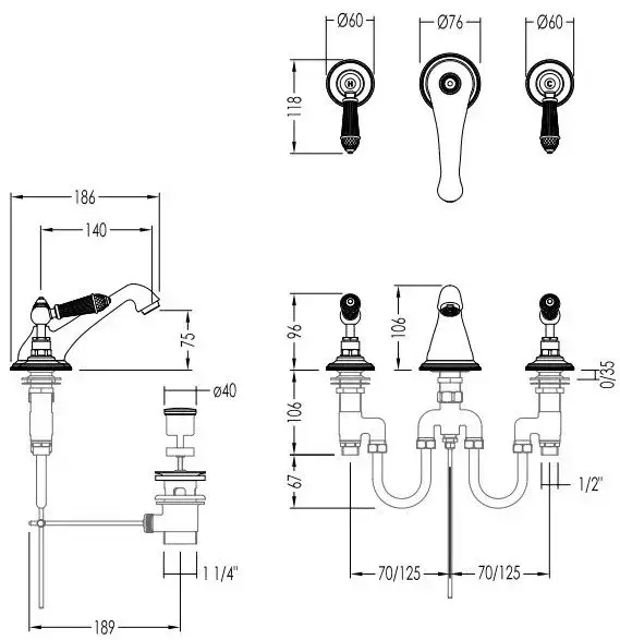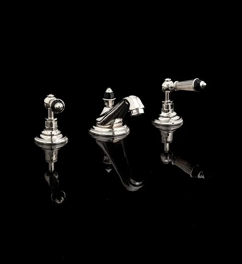 Devon&Devon Black Diamond Смеситель для раковины на 3 отв., с донным клапаном, с декоративными элементами черного цвета, цвет: хром