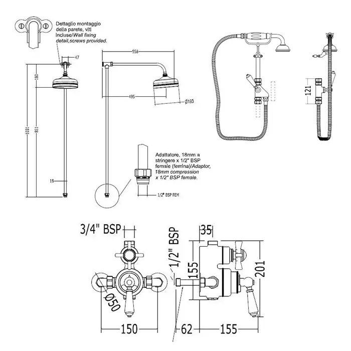 Nicolazzi Doccia Tondo Настенный смеситель с держателем и круглым душем, цвет: хром