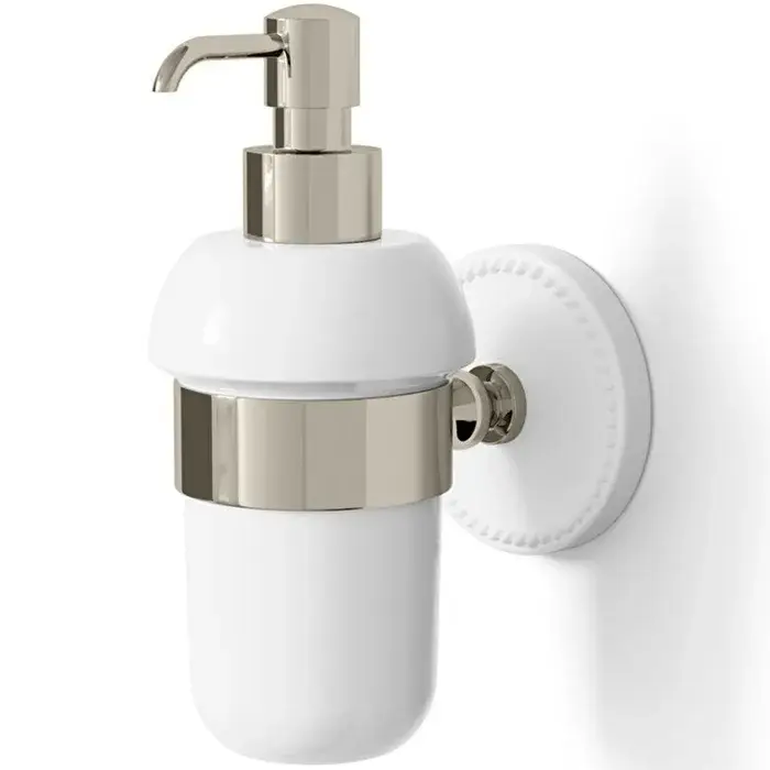 Devon&Devon Dorothy Дозатор для жидкого мыла белый, держатель и помпа цвет никель блестящий DOR430NK