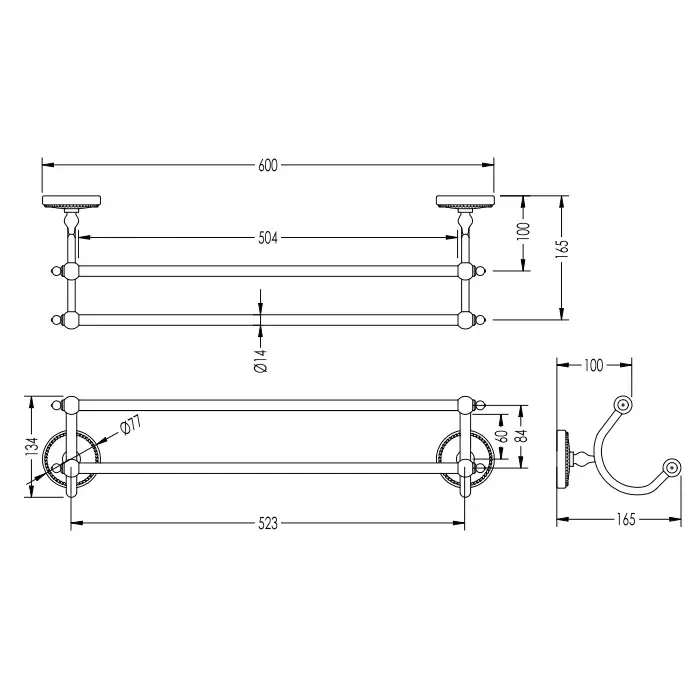Devon&Devon Dorothy Полотенцедержатель двойной настенный, 60 см, держатели цвет хром/белый DOR412CR