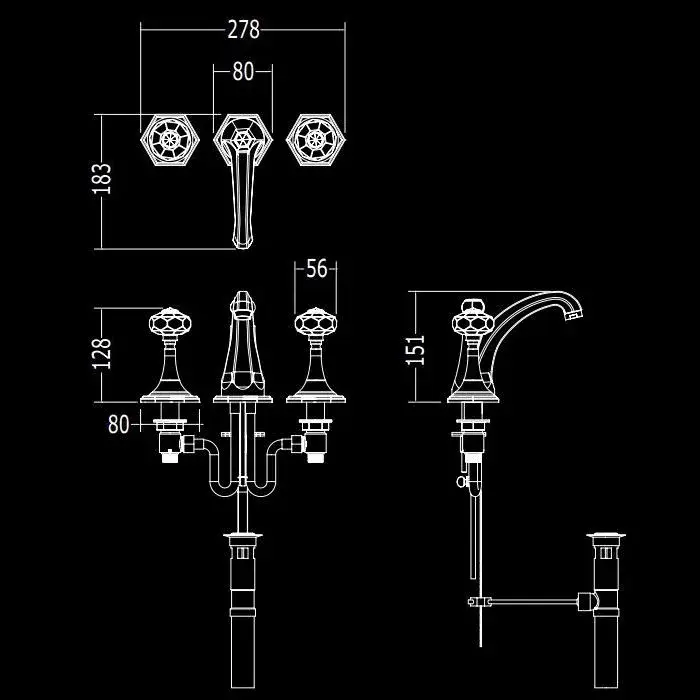 Devon&Devon Excelsior Gemstone Смеситель для раковины на 3 отв., цвет: хром EXC-GM100CR