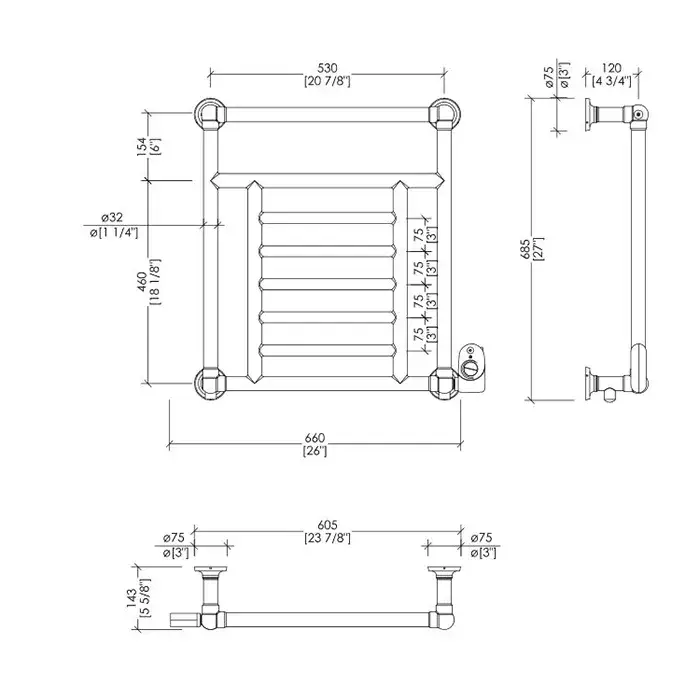 Devon&Devon Jupiter 3 Полотенцесушитель электрический 66x68,5xh14,3 см, цвет хром PRJ3CRELDX/CR