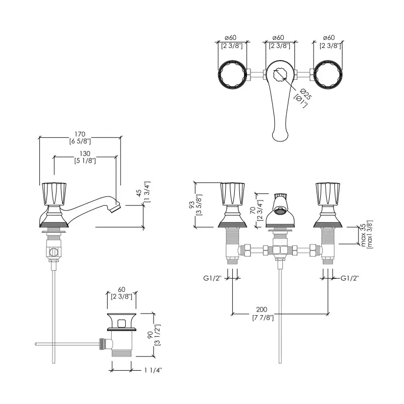 Devon&Devon Morris Смеситель для биде на 3 отв., ручки белые, цвет: хром DDMR312CR