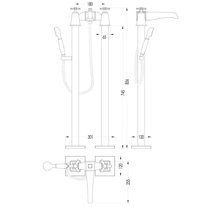 Devon&Devon Time Смеситель для ванны с ножками, лейкой и шлангом, цвет: светлое золото 2TIME235OT