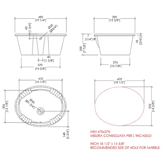 Devon&Devon Victorian Раковина 49х39 cм, без отв., встраиваемая на столешницу, цвет: белый