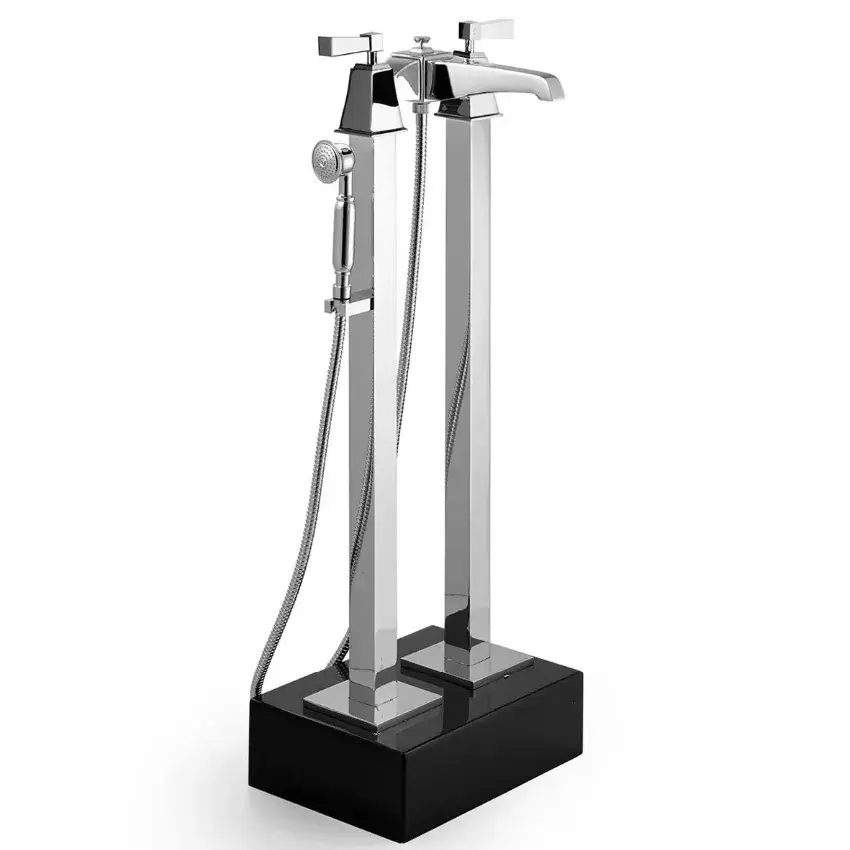 Devon&Devon Vip Time Смеситель для ванны напольный с ручной лейкой, ручки из черного хрусталя, цвет: хром