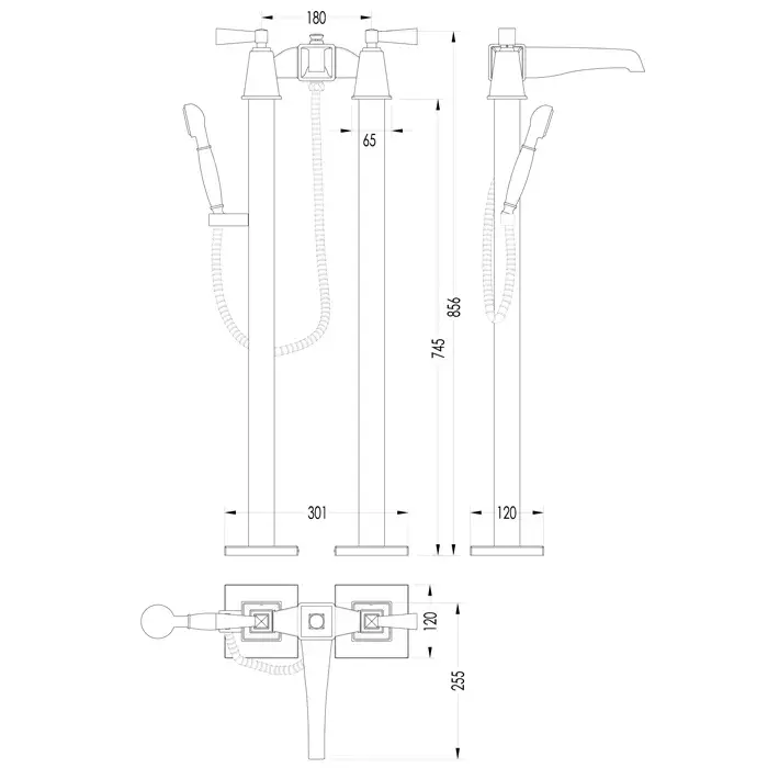 Devon&Devon Vip Time Смеситель для ванны напольный с ручной лейкой, цвет хром 3VPTIME235CRNE