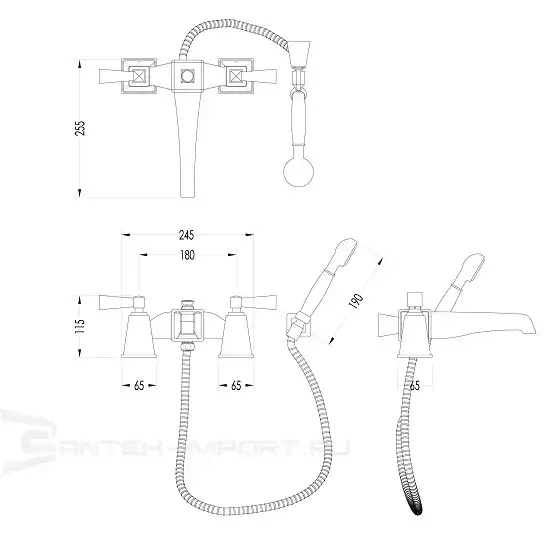 Devon&Devon Vip Time Смеситель для ванны, 3 отв., цвет: хром