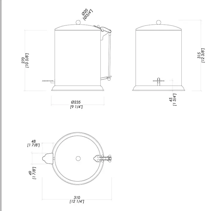 Devon&Devon Waltz Ведро для мусора, с крышкой и педалью, напольный, цвет: никель блестящий