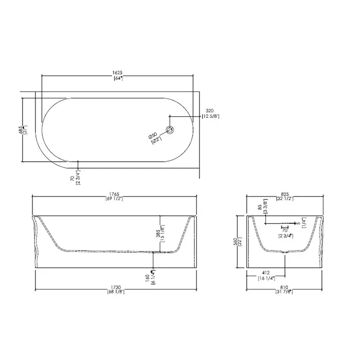 Devon&Devon Wave Ванна ассиметричная (176,5х82,5хh56 см) с закруглённым углом, цвет белый 1NAWAVEDX